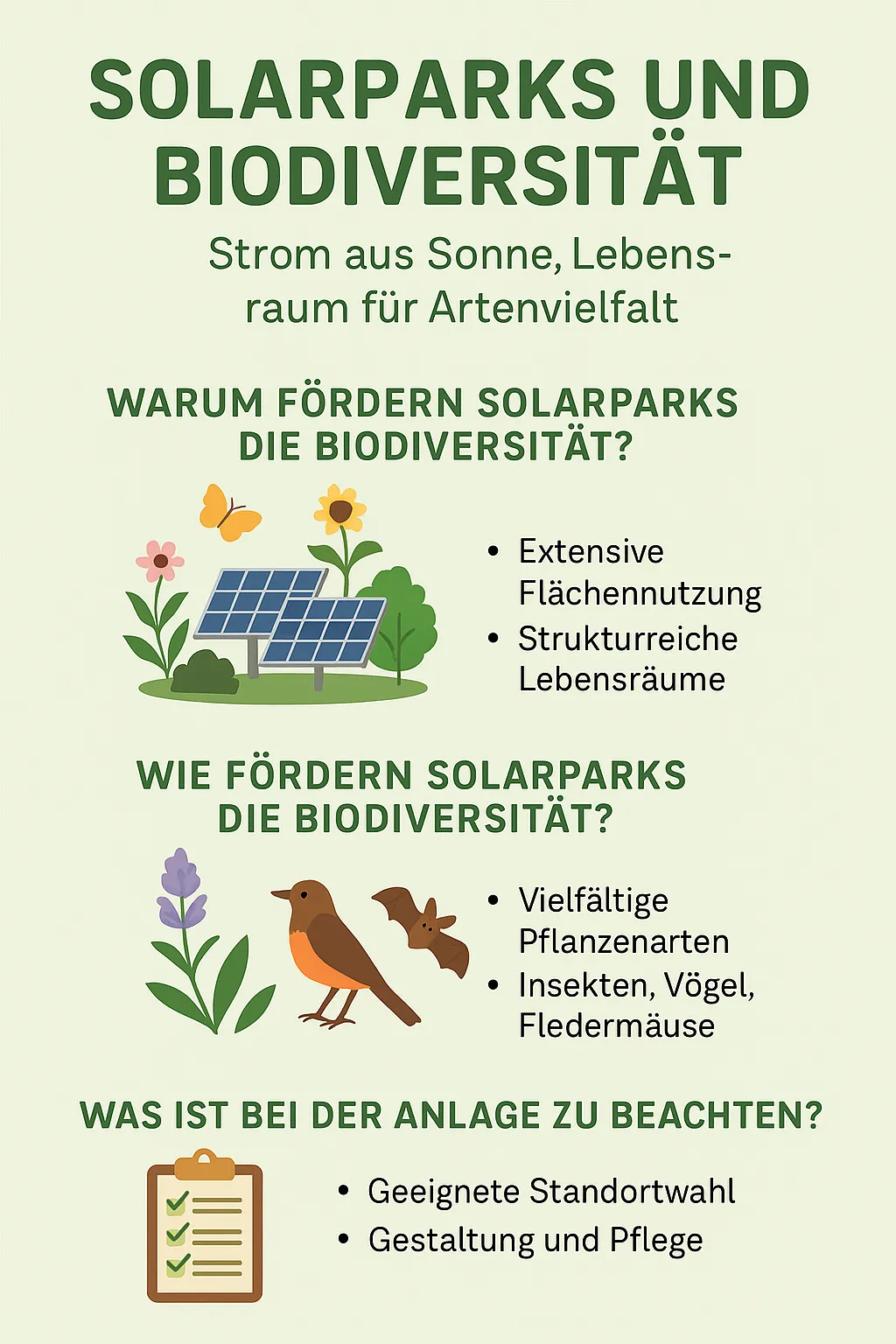 Solar parks are more than just places for sustainable energy generation. At a time when biodiversity is under pressure worldwide, ground-mounted PV systems make an important contribution to the ecological enhancement of the landscape. Scientific studies and practical examples show how solar parks – if planned and installed correctly – can contribute to increasing biodiversity.