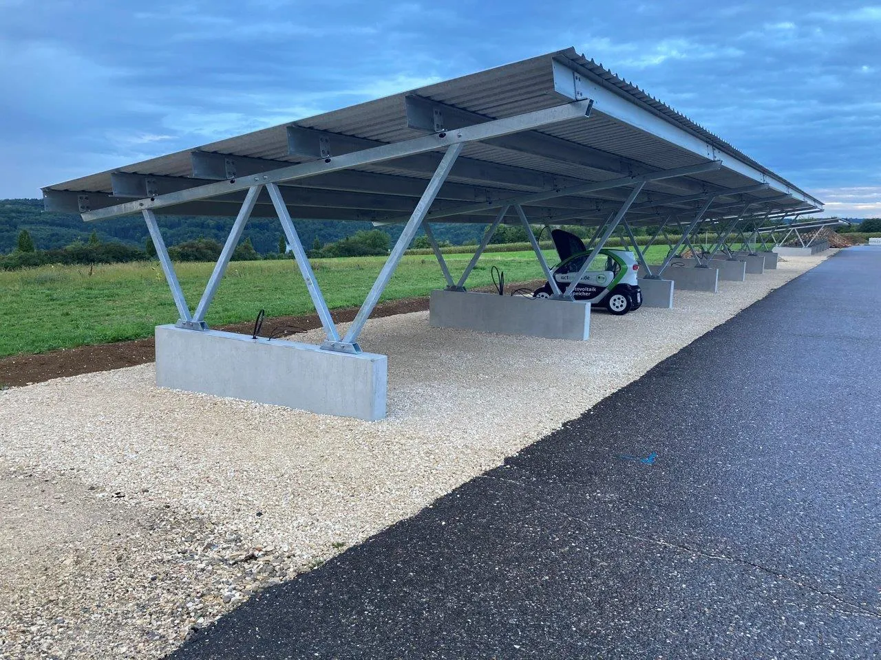 Constructively, the carport was designed to ensure quick and easy assembly. Pre-punched holes in the supports are provided for mounting charging columns and inverters.