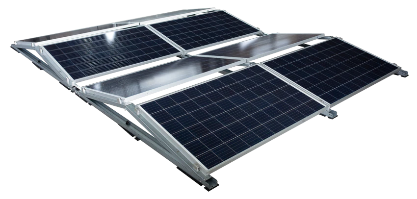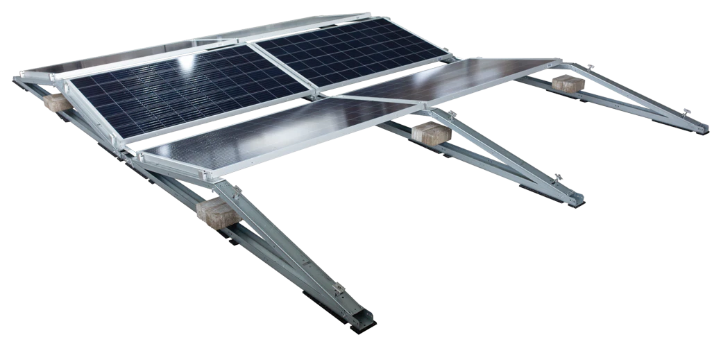TRITON EAST WESTThe TRITON flat roof mounting system is an aerodynamic, penetration-free PV mounting system for flat roofs of all types with a pressure-resistant substrate (foil, bitumen, gravel, green or trapezoidal sheet metal roof). The mounting system can be realized as an east/west elevation with 12° inclination as well as a south elevation with 12° or 15° inclination.